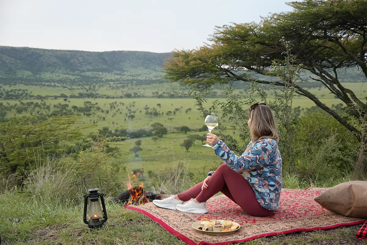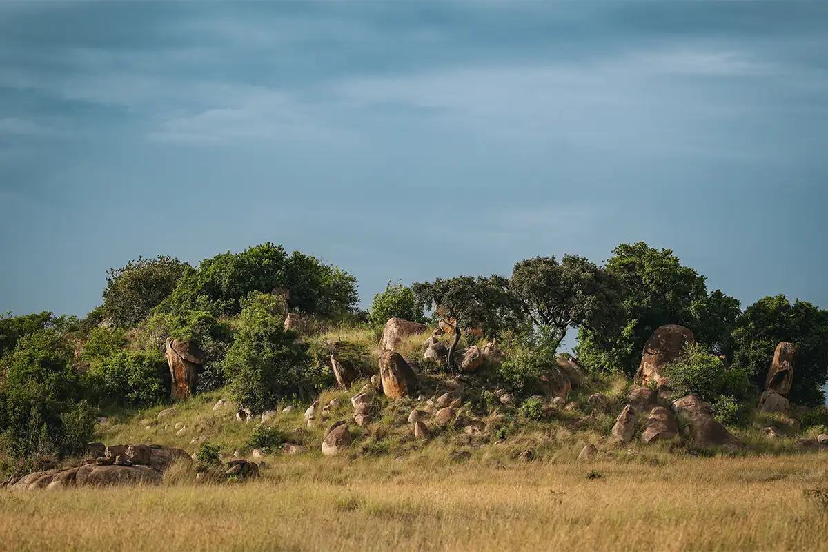 Nimali Mara is close to the crossing points, built among granite outcrops that hold the day's heat and release it slowly into the evening air. You move between open grassland and solid ancient stone, between anticipation and quiet. Even when the migration isn't in motion, its presence is felt in the landscape, in the way the herds gather at the riverbank and the crocodiles hold their position in the shallows and everything seems to be waiting for something it knows is coming.