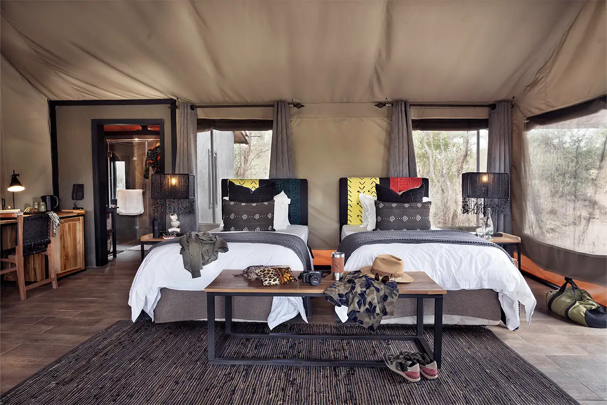 These are not camps in the traditional sense. They’re lodges - architectural, curated, quietly confident. But they remain rooted in the ethos of classic safari: open to the landscape, immersed in the rhythm of the wild, and built to draw you closer rather than wall you off. With their layered textures and canvas-clad walls, our tented suites let the bush speak, softly and constantly, even as you rest in comfort.
